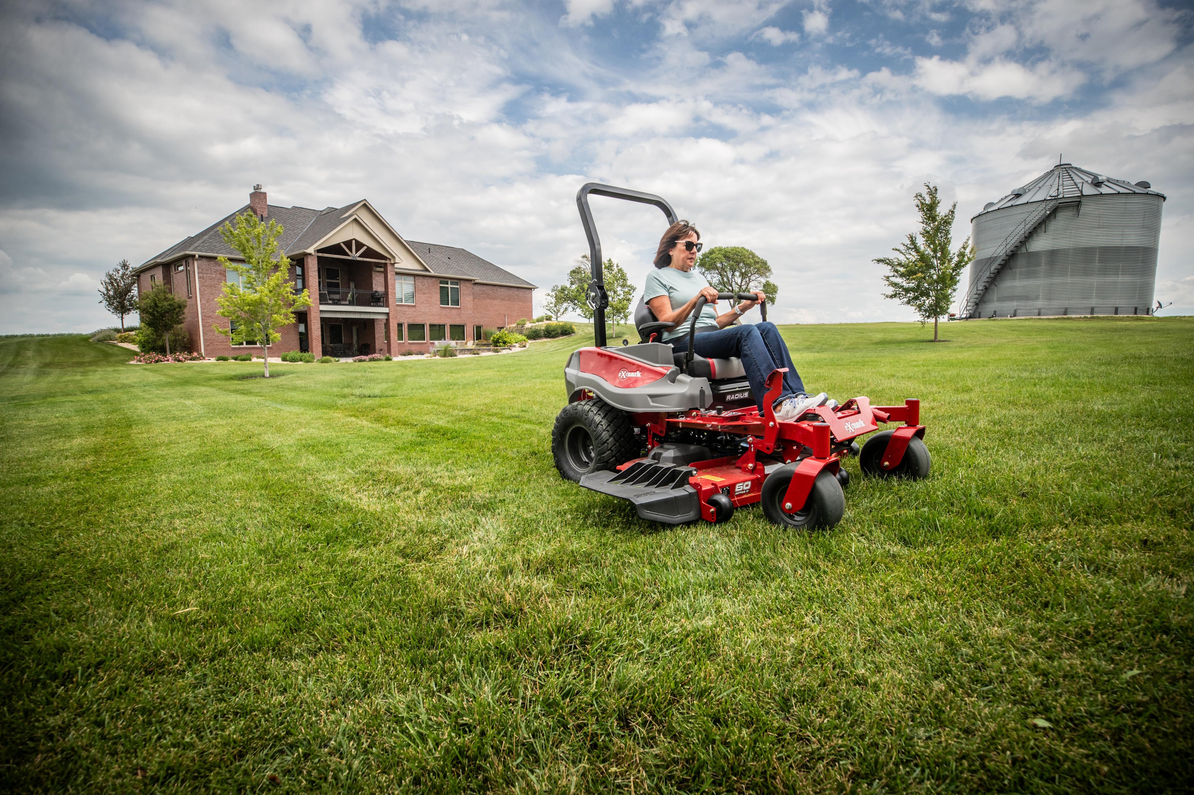 The integrated hydro pump and motor design of the HydroGear transmission provides increased durability. And with ground speeds of up to 8 mph, easy maneuverability and Exmark’s Signature cut quality, the Radius E-Series is a big upgrade over typical consumer zero-turn mowers.